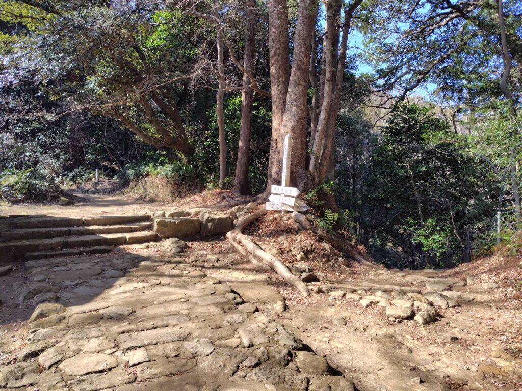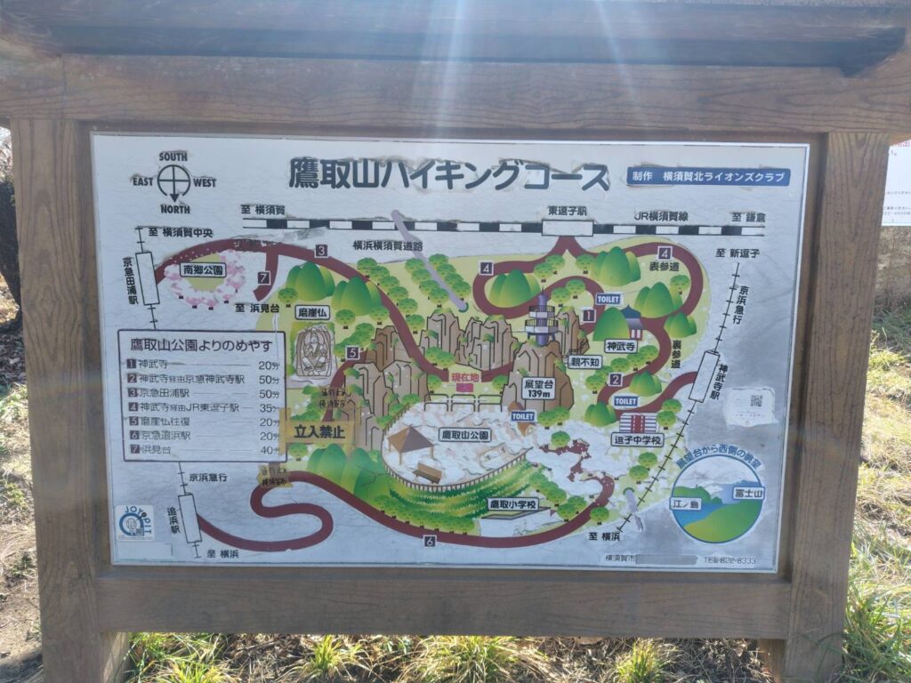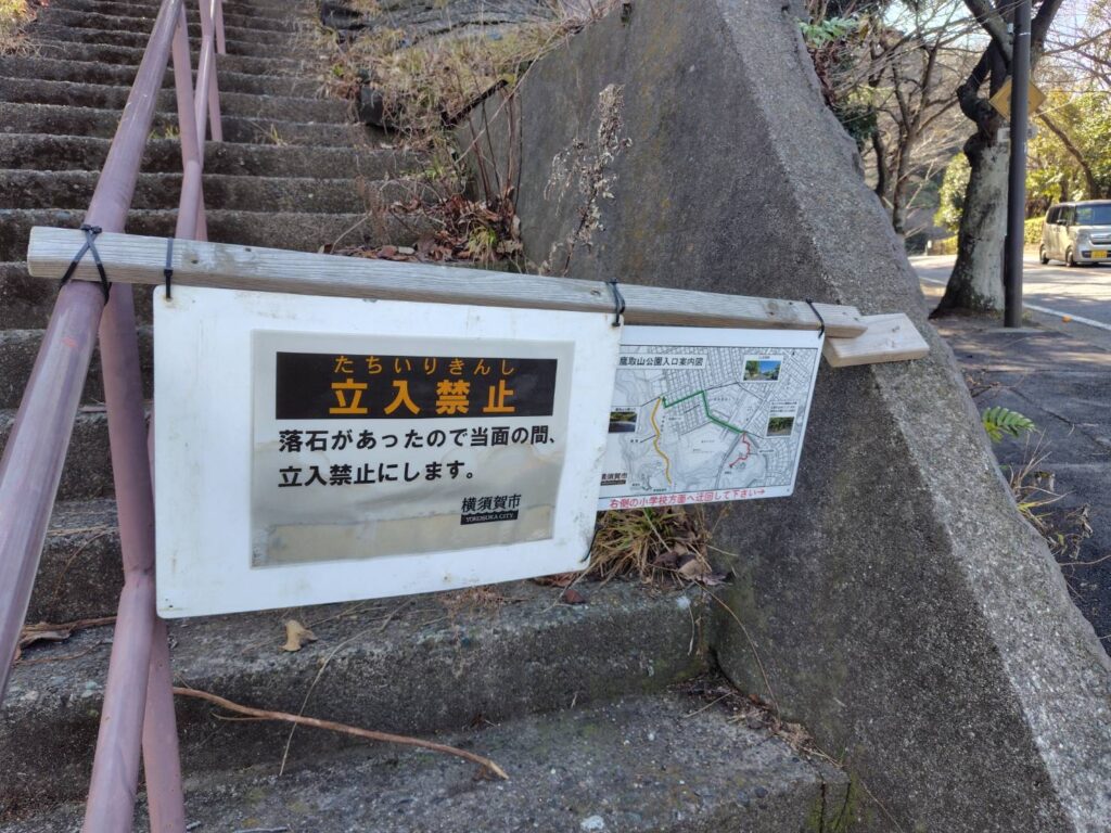 鷹取山への階段は現在閉鎖中で、う回路の案内が出ていました。